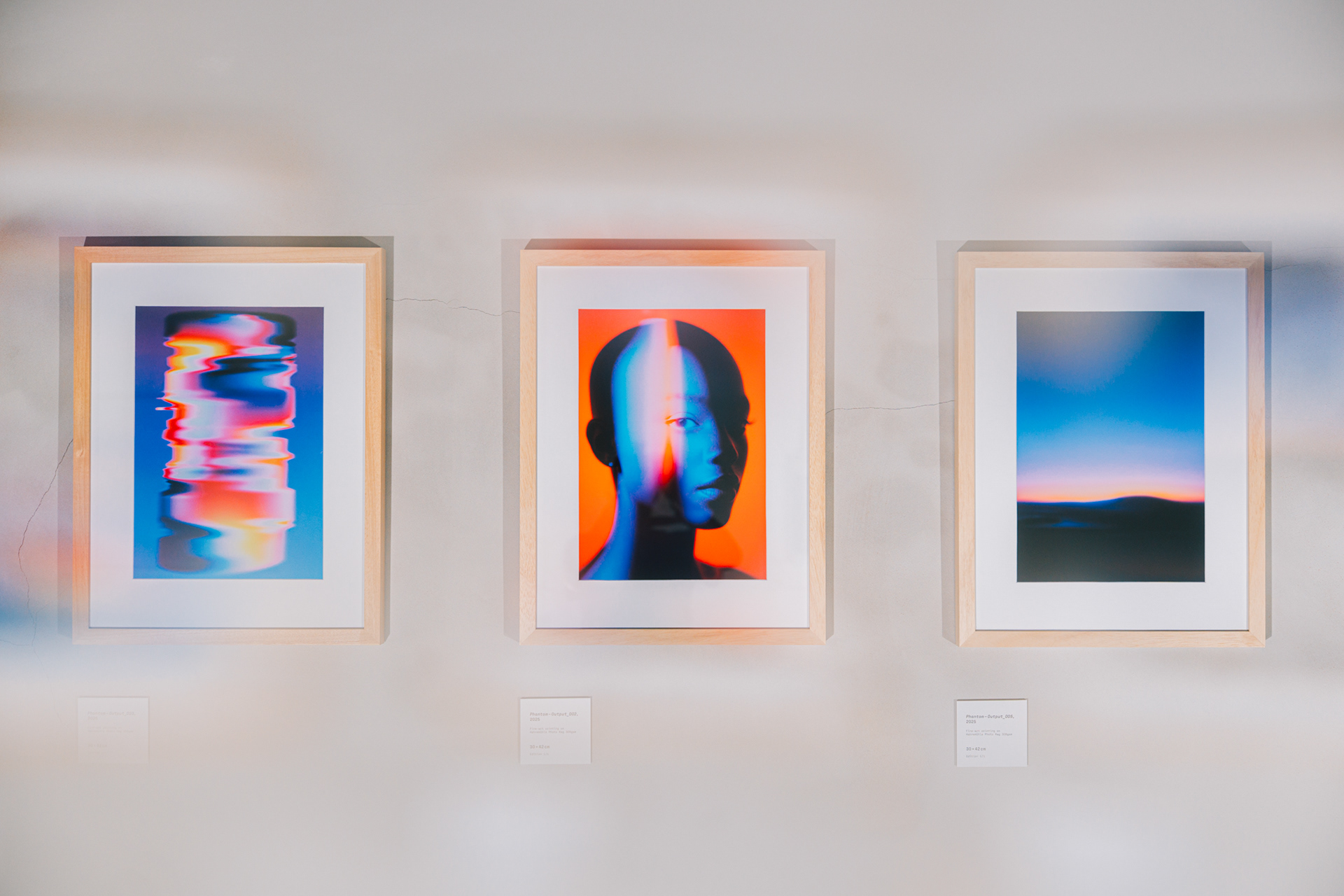 That's what I've done with the Phantom part of this exhibition. The Phantom part is purely focussed on AI outputs where I spent months and months on trying and testing to see what works. Given all AI tools really butcher gradients with multiple colors into trippy rainbow colours once you train them.