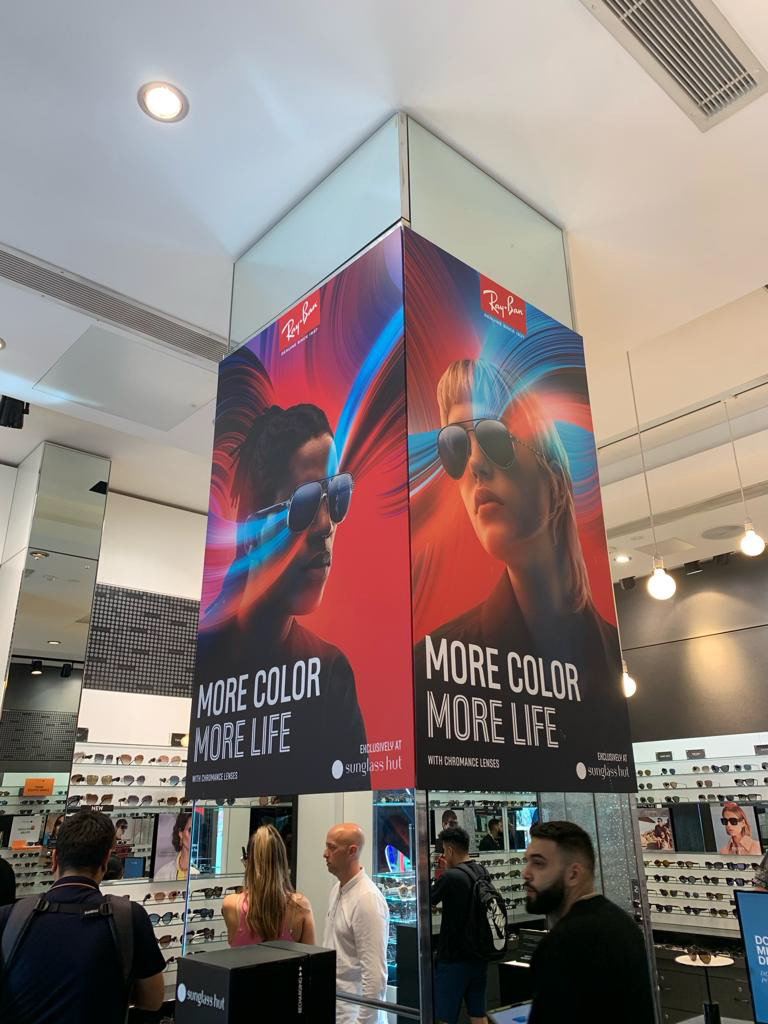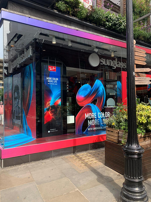 The goal was to create a package of assets that could turn any Sunglasshut globally into a colorful feast to celebrate the 2 new flagship products.